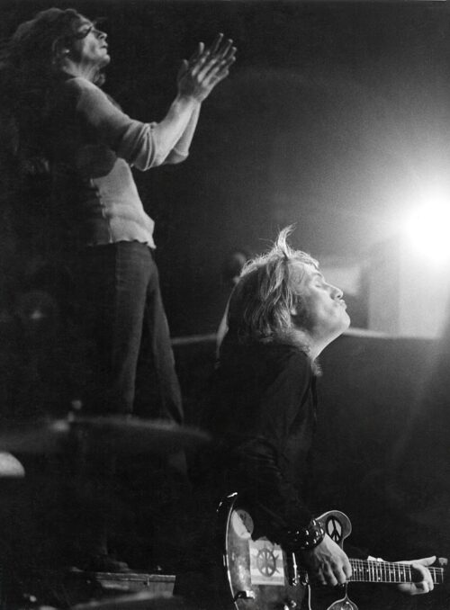 Alvin: It can do it variously. Like if everything goes cool, it’s good. But if your amplifiers start buzzing then you’re lost, and you get hung up on that. Or, if something sounds out of tune and you can’t work out what then you’re not going to get anything together. That’s the trouble with being stoned. I’d really gotten ripped last time at the Fillmore. Somebody said, “Here’s a super joint”. I’d heard that before, you know, so I thought “yeah” – and I got up on stage and I could hear a silence that went Pppsssss – and then was like doing a number, and I’d be playing the intro and think, I’ve been playing for ten minutes and wondered, have I sung already and forgotten? And like I was missing verses and forgetting to do a solo and think, what in hell is this song? In a horrible way I kept it together loosely and the majority of people didn’t know. You know, it can be used, man. Like I try not to abuse it at all. I try to stay very cool, and really, you’ve got to if you’re trying to do something and you want your body and your mind to work for you. You’ve got to give it a chance, you know. Like just dropping everything in sight, that seems very romantic to have someone come around with a pill and then, “I wonder what these are, let’s see yippee!!” But like not everybody can do that. That’s the kind of people that everybody likes and then you watch them……