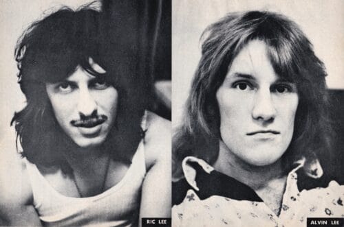 Alvin, along with Ten Years After bassist Leo Lyons certainly had a crack at entertainment back in 1964, when they led a raunchy rock group in Hamburg, Germany. At that time they were very much into the popular affectations of rolling around on the floor and screaming after the third bridge of each song. But it soon became apparent to them that the purely visual affectations couldn’t generate the same communicable excitement as could heated musical interchanges. “The good thing,” says Lee, “is that people react physically to music – that the audience participates – and that you can play for the people and build around their reactions with your music. This is what’s important to us…the feeling we get fed back from the people.” “I used to wonder if I should go out and entertain, or just go out and play…and then I wondered, should I go out and play for the audience….or for myself. I used to be quite paranoid about things like that. But I found that it’s all the same thing if it is working. We and the audience react the same ways to the same things if we’re in touch. And if we’re not in touch, there’s no way to make it work.” “I’m always grateful when people listen. For a long time that didn’t happen, and there was no way for us to relate to the going-on, at that time we played for ourselves as a consolation. Today we realize that no sincere musician can honestly say that he plays the music for himself. If that were the case, the speakers should be turned around, facing him and not the audience.”