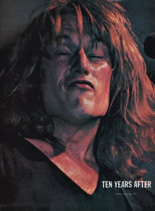 Today – boosted by such great albums as “Ten Years After,” – “Stonedhenge” – and “Ssssh” they are big in Britain. They have also won an army of fans in America through their disc and their exciting live performances on major tours there. (The group have wonderful souvenirs of their American trips, in colour films taken by Alvin’s movie camera).