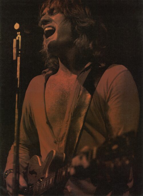 “You see, we need to reach beyond our capabilities, and now we come to the point where, are we best to reach a bit further, or are we best to play the things we’re doing well? We’re going to try and do some stock old blues things, and see how that comes out, integrated with other live things. The band isn’t the kind of band that can just play in a studio. The Beatles reached out in the studio, and didn’t play live at all, and a lot of bands are doing more studio than live things now, but we’ve always been more of a live band, and you get a feedback from an audience, which keeps you in touch, and stops you going out on a limb. But concerts, in some places become more and more difficult. In Germany recently, there were fifty photographers out in front with flash bulbs going the whole time. It was terrible for us, and terrible for the audience. I stopped playing and got somebody to come onstage and tell them to stop in German, but they all started up again three minutes later. And once you begin to notice the hassles, it’s a psychological thing, and it gets worse, like at Madison Square Gardens, about two percent kept quiet.”