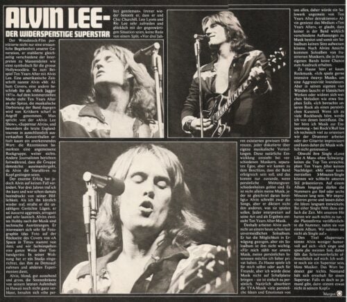 Alvin Lee is currently suffering from a surfeit of everything. He’s had too much touring, too much hype, too much idolatry. Nowadays the band can’t play without being drowned by screaming or a constant barrage of blue flash bulbs from photographers. They’re hounded at airports and their records are bootlegged.