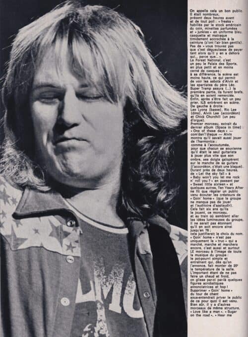 Alvin Lee is currently suffering from a surfeit of everything. He’s had too much touring, too much hype, too much idolatry. Nowadays the band can’t play without being drowned by screaming or a constant barrage of blue flash bulbs from photographers. They’re hounded at airports and their records are bootlegged.