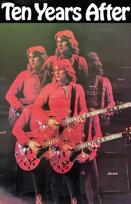 Good question. Well, when we did our first album we were very new to the whole recording situation, and our producer was provided with the studio and we were told to appear at ten o’clock in the morning and make an album. And it was out in four days. We were very green. We just recorded all the numbers we did on tape in the studio. I don’t think at the time we even heard it until it came out. When it finally did go out, we were quite disappointed, really, as the result didn’t seem to have the dynamics of the record we had played within the studio. And we realised this was down to the recording techniques. The second album was live, so there was nothing to do about that. Then we decided to produce ourselves. Still, being rather green we used the same studios that we’d been given. It’s a Decca album, so we used a Decca studio. It only had a four-track machine. There were no facilities for panning stereo, and what little bit of that we did we had to have equipment specially made. We had this little box made to pan across an instrument, from one side to another. That’s the reason for all the corny panning, just one box with one knob on. It was just a matter of getting into the format. Getting to know what it was all about. We realised that rather than doing what somebody else suggested, who wasn’t really interpreting our music the way we wanted it interpreted, anyway, it would be best doing it ourselves. Even if you make a mistake, I believe that your own mistakes are better recorded than someone else’s. Ten Years After music is quite personal to us as musicians, and I think it should be recorded our way than the way a third party sees it. I believe of all musicians, I find it hard to respect a musician who uses a producer, because I think that if a musician knows what he wants to put down, he should do it himself. That’s where the art of recording comes in, to know how to apply your music to the tape, to get the results in. We haven’t, to my own personal satisfaction, done anything at all incredible, but every album has had good bits, and we’ve learned from them. So, hopefully, we are in control and will make them better and better as we go along, which is the logical progression anyway. I must be putting producers out of business!