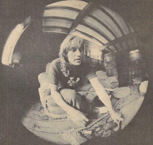 “Once we open the studio all there will be left to do, is just do it. I’ll be a great booster for me, a good kick in the pants ya know.” Lee’s first solo album will probably be completely recorded on his own in the studio. “I want to use the guitar as a basic and then use multi-tracks and tricks and harmonies on top of that. Possibly I might use somebody else, but mostly I plan to just sit in the studio and record it myself. Still it would be much looser than recording a normal album. Hopefully it’s going to be very different to anything I’ve done before, that’s what I’m aiming at…to break out of the conventional things I’ve been into – It’s much easier to do that on your own because you only have yourself to argue with.”