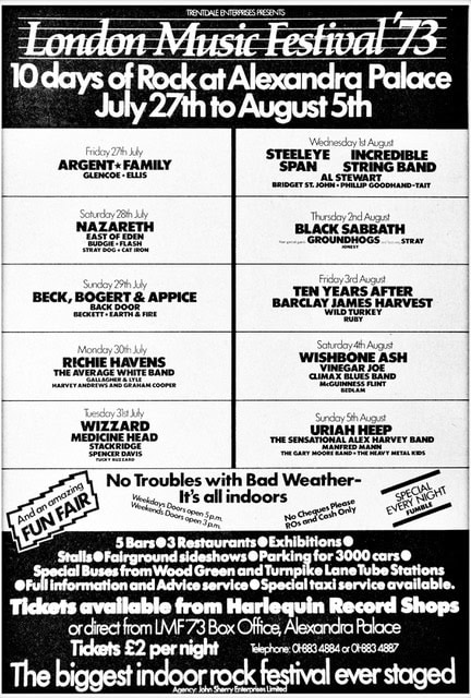 (The concert was August 3, 1973 and took place at Alexandra Palace – North London Venue – called “ALLY – PALLY” for short)
