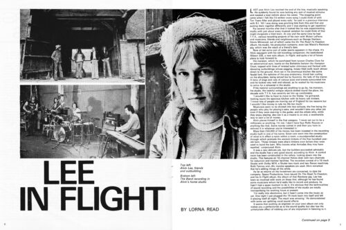 As far as returns on his investment are concerned, to date his company, “Space Productions”, have issued “On the Road to Freedom”, and his “In Flight” album, the album of that Rainbow gig. Lee has been so involved with work on these that, although he has found some musicians whom he’d really like to record and produce, he hasn’t a spare moment to do it. It’s obvious that the technicalities of sound recording and the possibilities of the studio are totally monopolising his working hours at present.
