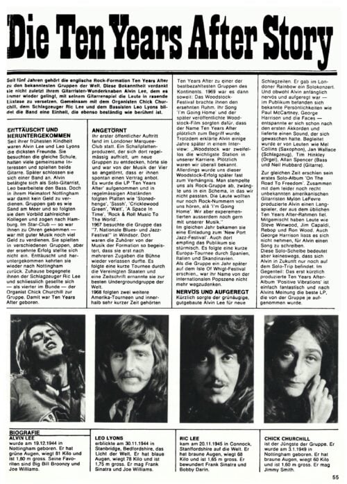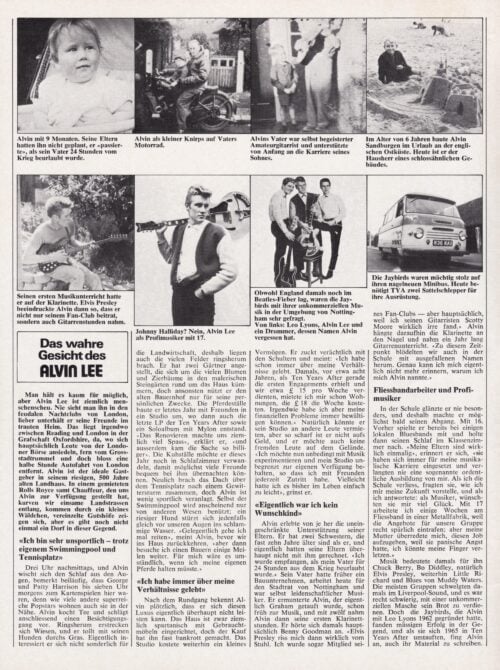 Despite their solo activities, it is still being emphasised that Lee is not leaving Ten Years After, and that Ten Years After is not splitting. A spokesman commented: “No doubt Ten Years After will be back with a big splash as soon as Alvin has completed his world jaunt”.