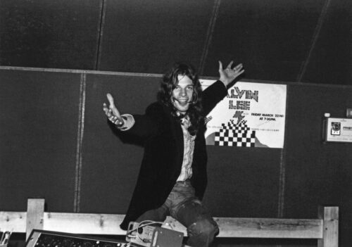 * “Well,” said Lee, not realising what he was about to let himself in for, “I can do whatever I want, when I want.” “No you can’t.” said Doran. “Yes I can,” retorted Lee. It continued like this for awhile. Suddenly, Doran called the guitarist’s bluff, “O.K. Alvin,” he began, ” if you’re as independent as you say you are, then why don’t you put on your own solo concert at the Rainbow?”