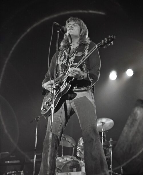 And Doran’s challenge to Lee has resulted in Lee coming out more as a musician. Early this year, he found himself in Nashville, working with Earl Scruggs on his anniversary LP, along with Charlie Daniels, Billy Joel, Tony Joe White, The Scruggs Brothers, Reggie Young and Bonnie Bramlett. Another LP with Mylon is tentatively set for some time in 1976, and he expects to return to England at the end of this tour.