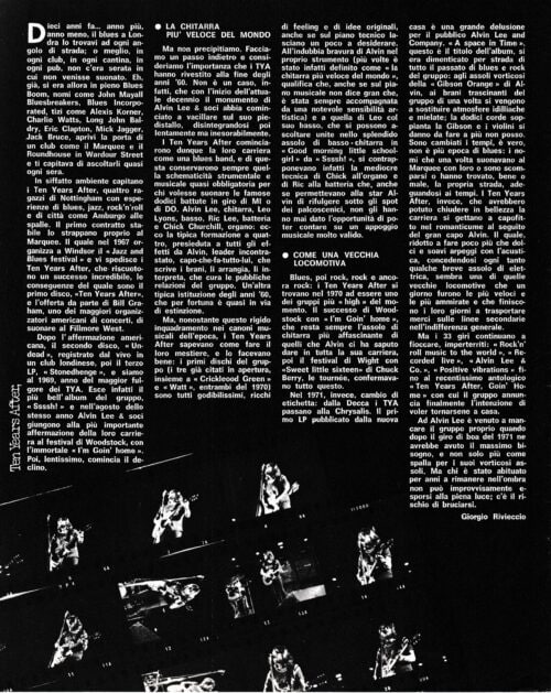 “Ten Years After grew into something I didn’t want – the heavy rock image thing, and we really tried to keep out of that. But it happened anyway through “Woodstock”, which was a complete accident, and it really changed a lot of people’s attitudes to what we were doing. Before then it didn’t seem so important, just go out there and have a good blow and get people off. Suddenly, it was really big gigs. Gotta play note for note. The fun seemed to disappear when the audience got to 12,000…15,000.