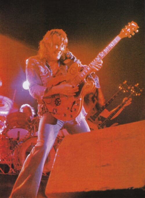 The English tamed a monster that terrorised the streets of Paris last week. A giant boiled egg seven feet in its cup, was manfully tackled by Alvin Lee with a flying leap that drew cheers from revellers spilling across the cobblestones at 3:00 am. The monster had wobbled majestically along La Rue Francois Miron, propelled by a team of bearded madmen who turned out to be Alvin’s road-crew. They had captured the prize and presented it to the phantom guitarist as a token of their love and affection. There was a lot of affection for Alvin on this night of nights. It marked a return to active service by one of the giants of the rock guitar. If Alvin ever felt uncomfortable, worried or embarrassed about making a comeback with a band called Ten Years Later, he didn’t show it in the slightest on this trip to France last week. Earlier, there had been dates in Germany where he had been greeted with heart-warming fervour, and the fans at the Pavilion Porte de Panpin on Wednesday last week roared, whistled and stamped their approval after a blistering performance with Tom Compton on an enormous drum kit, and Mick Hawksworth on a double necked bass guitar.