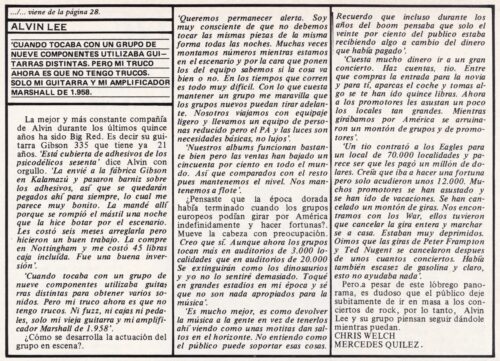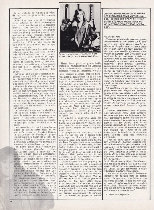 Alvin is one of those veteran rockers who in 1979 took his guitar out of storage to play again. He did not settle very well into retirement that followed the dissolution of Ten Years After, and after some experiments in groups and some solo albums with which he leaned toward country-rock, he decided to form a group again called, imaginatively, Ten Years Later. For a year and a half he has been back on the road, regaining the applause he enjoyed, although it is true that times and fashions have changed.
