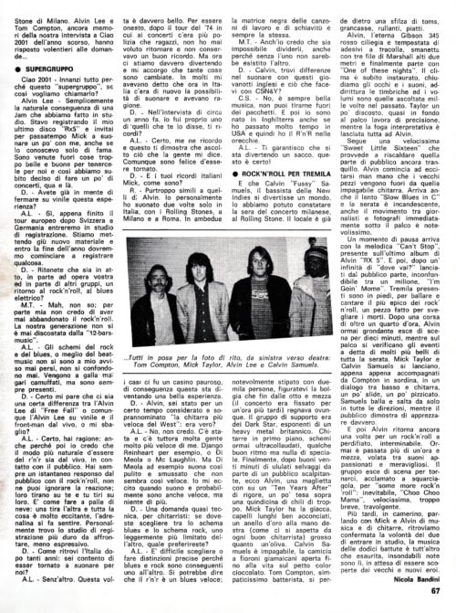 **Alvin —** I would really like not to have any role; I think that even being invested with a certain social responsibility, as a human being I absolutely don’t feel the so-called “expression of my time.” I play and that’s it, I do what I like and what works best for me. I only think I’ve given something to a lot of people, of having placed my brick for R’n’R and that’s enough for me.