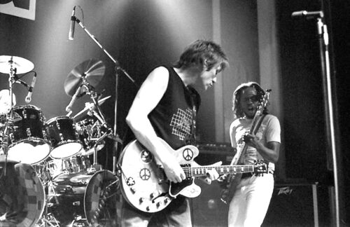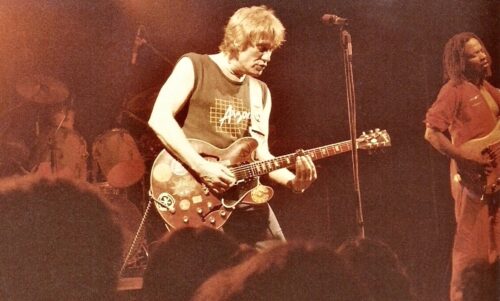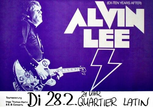 Alvin Lee’s October 6, 1983 set at the Channel proved his point. Accompanied by former Crosby, Stills, and Nash bassist Fuzzy Samuels and drummer Tom Compton, Lee ripped through “Good Morning Little Schoolgirl”, “Choo Choo Mama”, “I’m Going Home” and other Ten Years After memories. He also slipped in the rock chestnuts, “Sweet Little Sixteen”, “Slow Down” and “Hey Joe”. A pounding drum solo and a surprisingly entertaining bass solo by the dreadlocked Samuels supplemented the expected guitar fireworks. It was the kind of performance which had fans – perhaps imagining it was 1969 again – screaming for more. The veteran guitarist expresses enthusiasm about such club appearances. “I like doing these clubs like we did tonight,” he offers. “To me, that’s the ideal gig, because the audience is right there and you can feel them. And the sound is tight.”