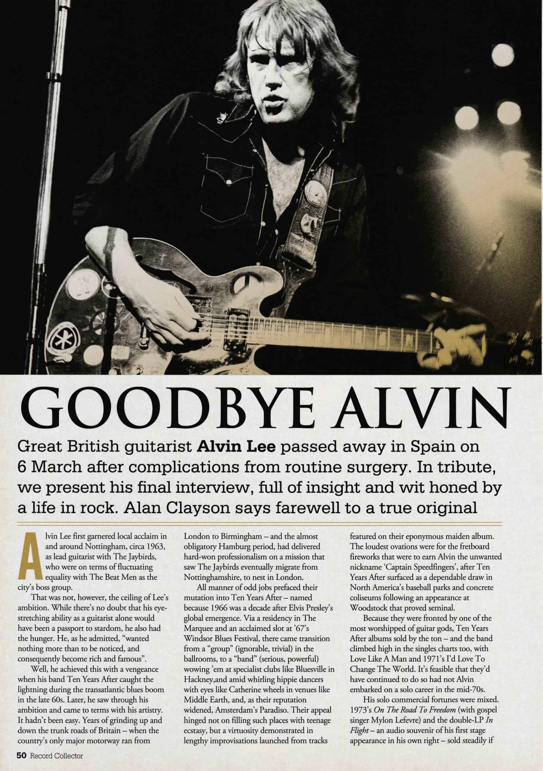 Alvin’s Last Interview – released in Record Collector magazine April 2013