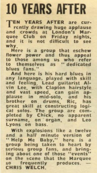 When I left New York in the middle of August, to return home after a nine week trip, I knew that it was only a matter of time before Ten Years After would be one of the biggest groups on the American Circuit.”