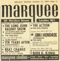 October 16, 1967 – Play at The Blue Horizon in London, England
