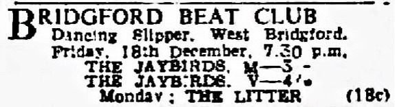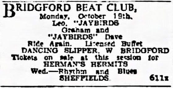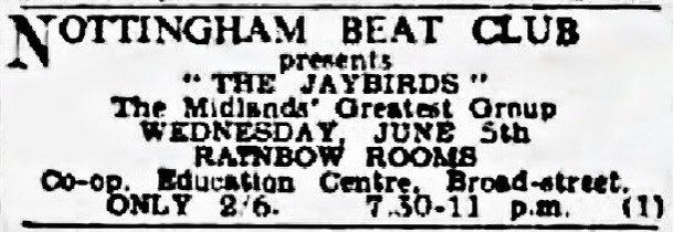 | November 1, 1963 | Derby | The Beat Club presents at the St.James Hotel | as The Jaybirds![]() |