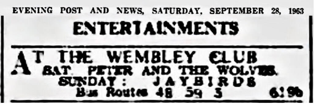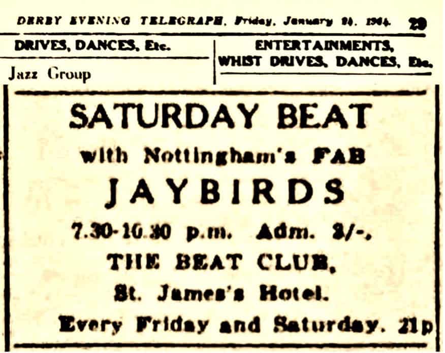 | June 2, 1963 | Nottingham | Wembley Club | as The Jaybirds |