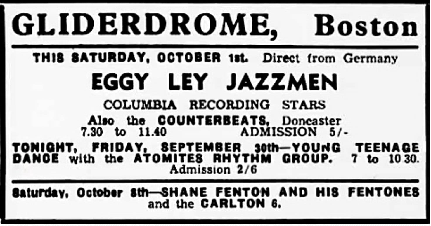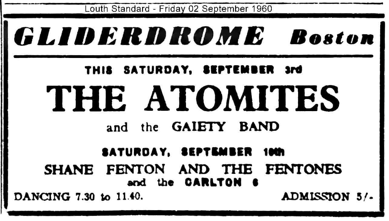 | September 3, 1960 | Boston, Lincolnshire | Gliderdrome | as The Atomites |