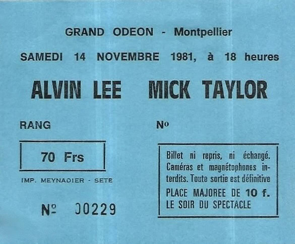 | July 18-25, 2009 | Patrimonio, Corsica | International des Nuits de la Guitare | Alvin Lee played on the 18th Tracy Chapman / Vicente Amigo / Birli Lagrene / Keziah Jones Tchavolo Schmitt / Stanley Clarke / Marcus Miller / Victor Wooten a.o |