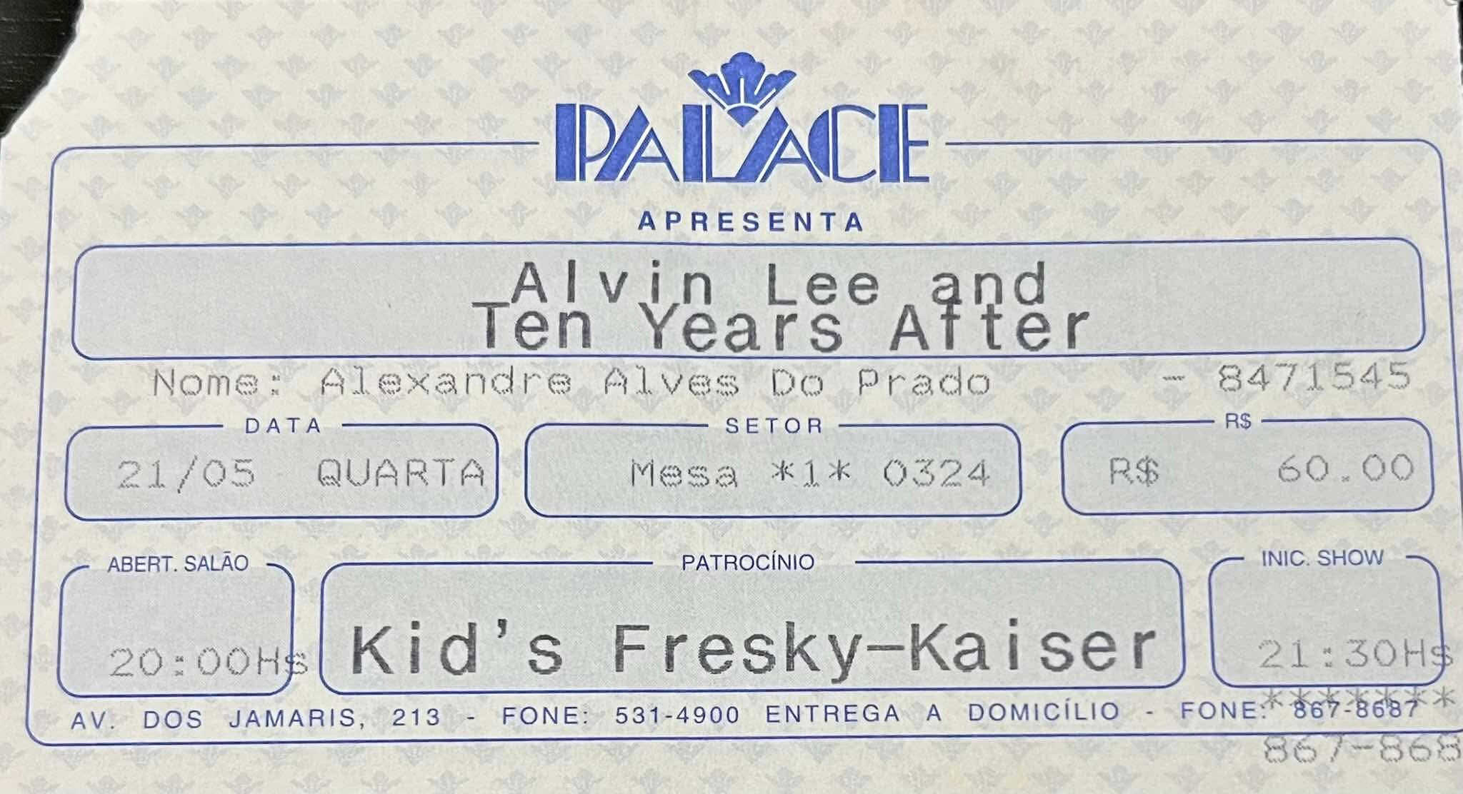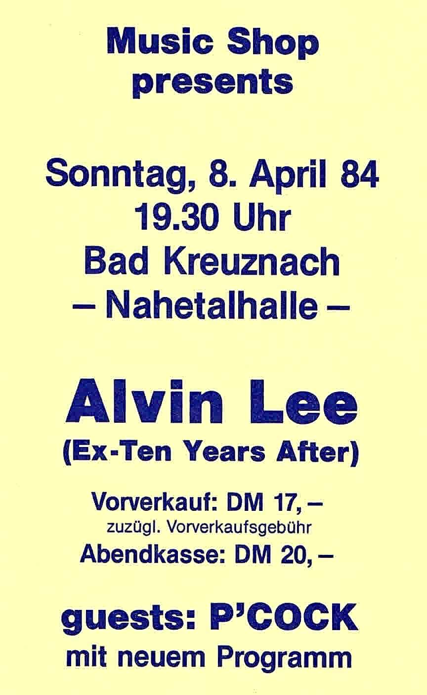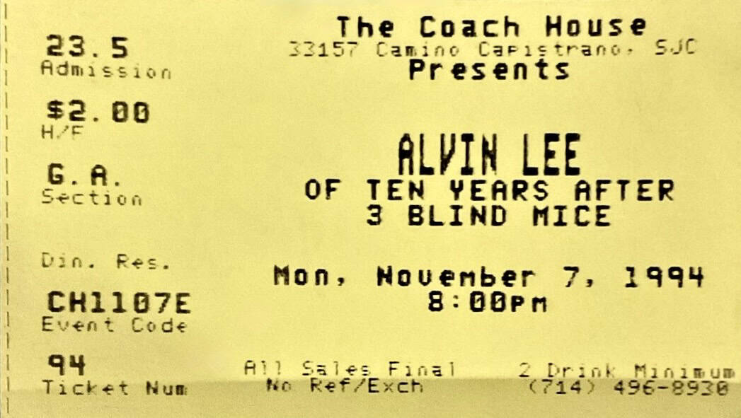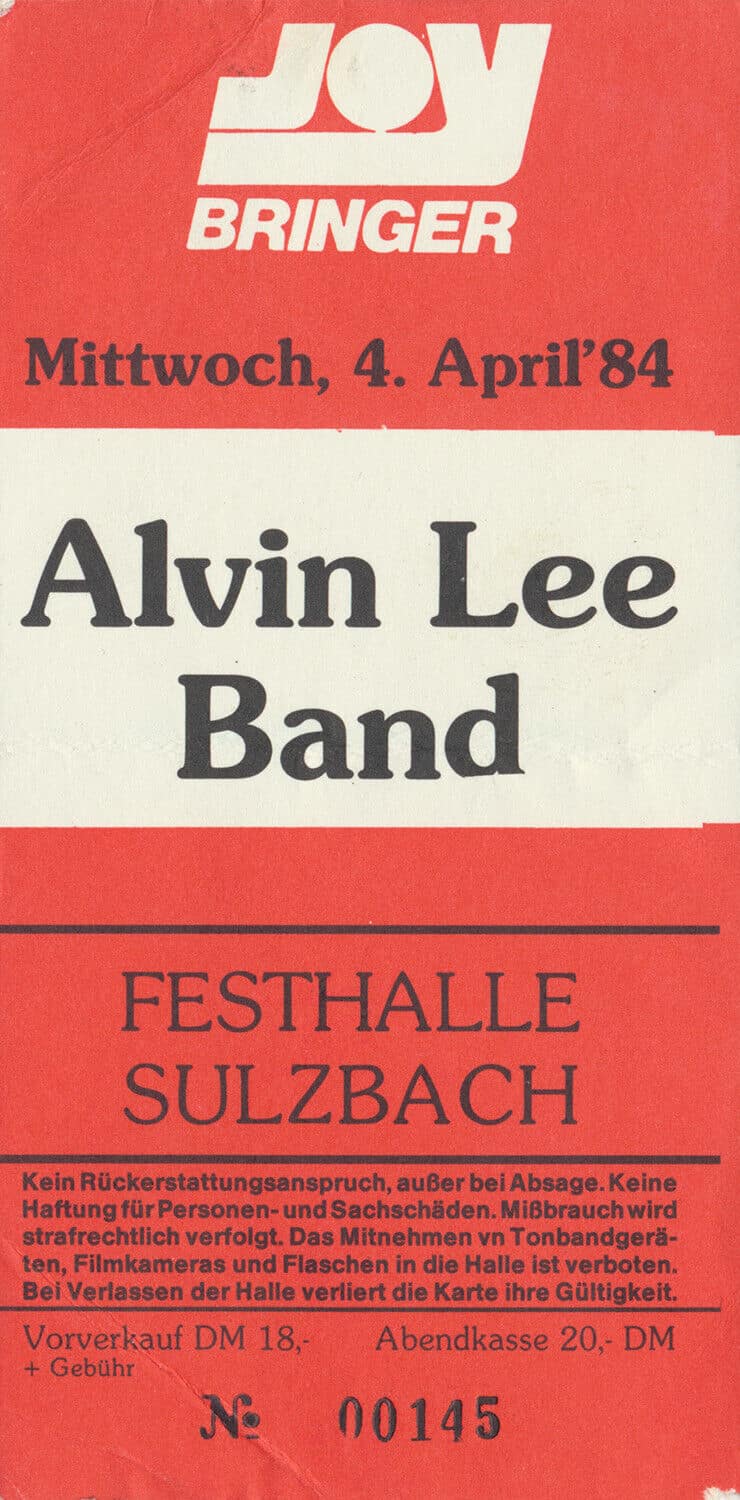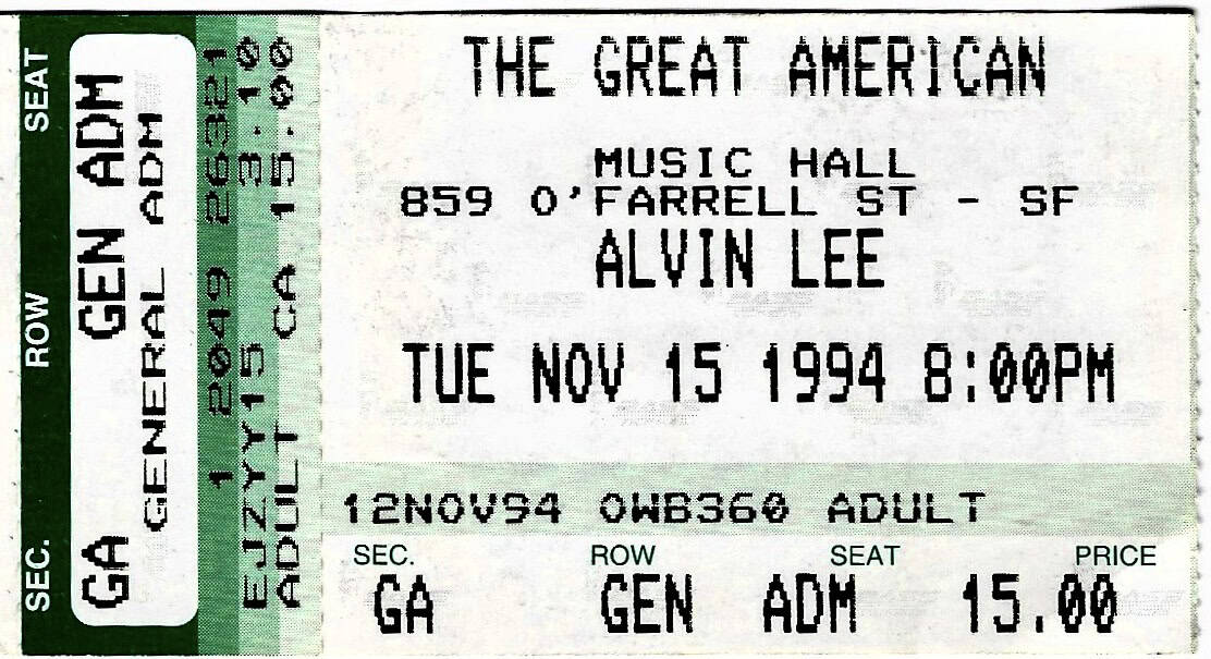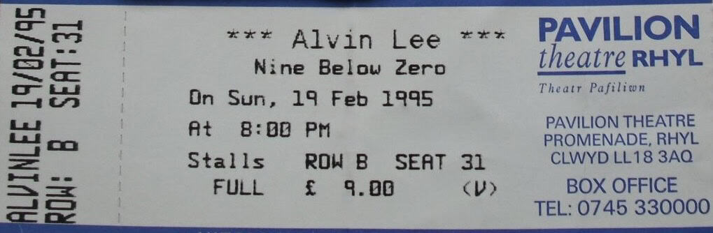 | April 17, 2004 | Oxford | New Theatre | Alvin Lee Band with Pete Pritchard – E-Bass & Upright Bass / Richard Newman – Drums. UK Tour with Edgar Winter / Tony McPhee |