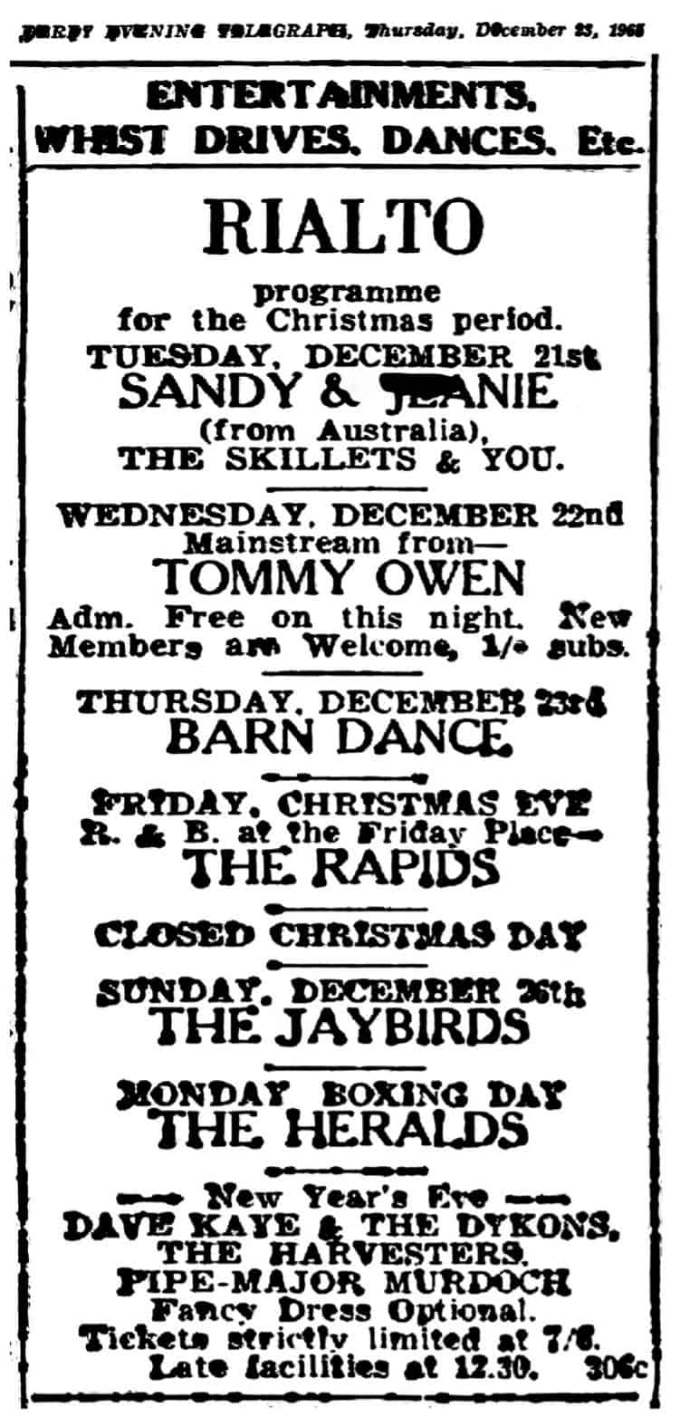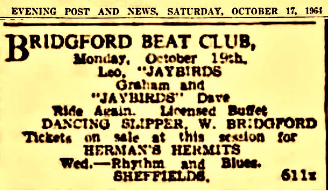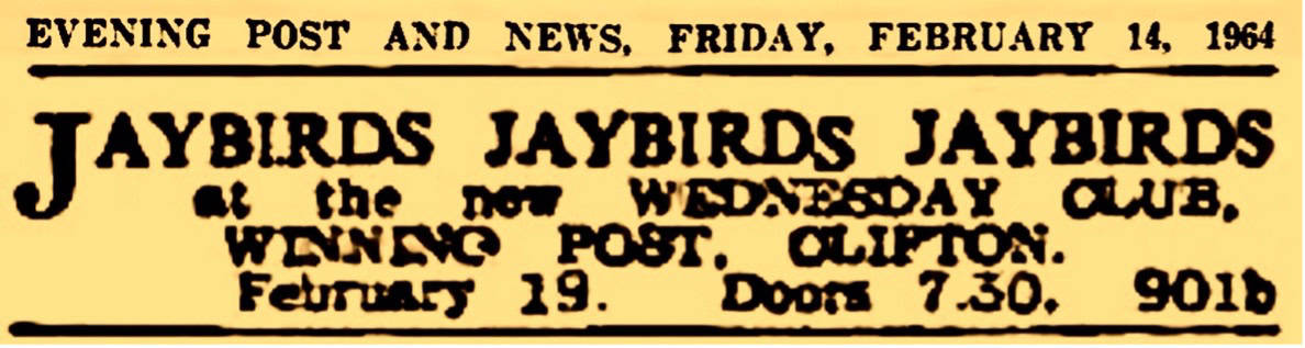 | November 1, 1963 | Derby | The Beat Club presents at the St.James Hotel | as The Jaybirds![]() |