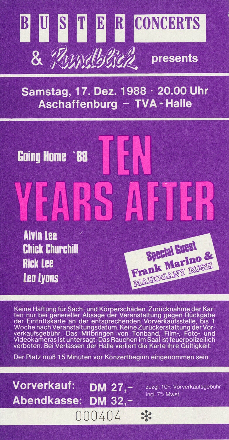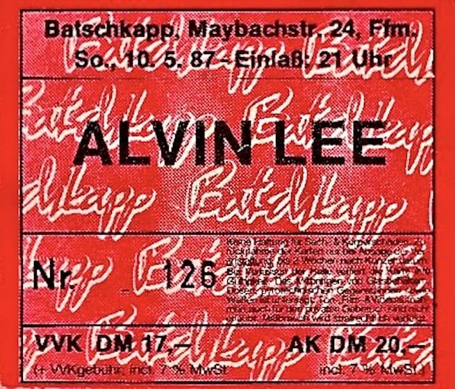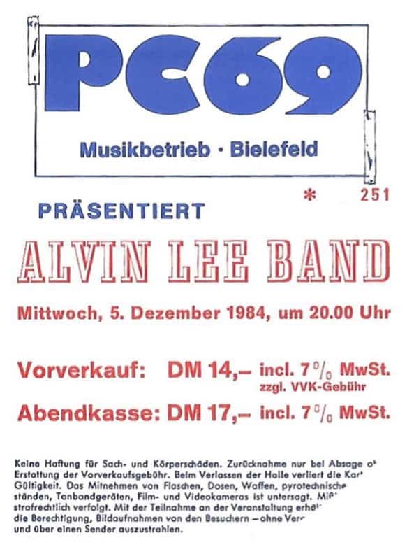 | July 19-22, 2001 | Burg Herzberg, Germany | Festival | Alvin Lee Band played on the 20th with The Pretty Things / The Crazy World Of Arthur Brown / Magma / Big Brother And The Holding Company / Guru Guru / Caravan / System Seven feat. Steve Hillage / Birth Control / Embryo a.o. |