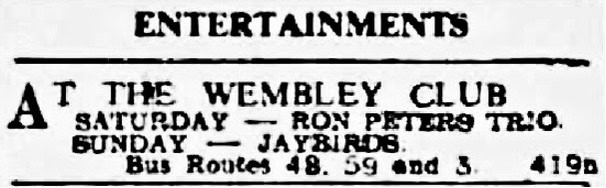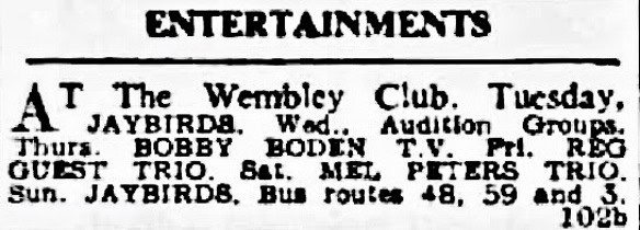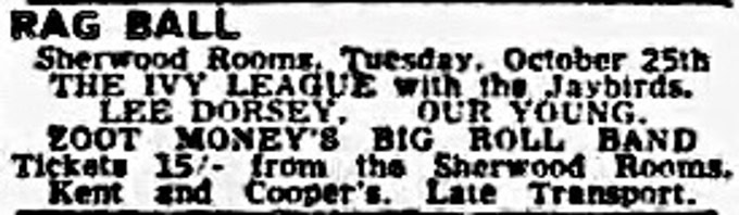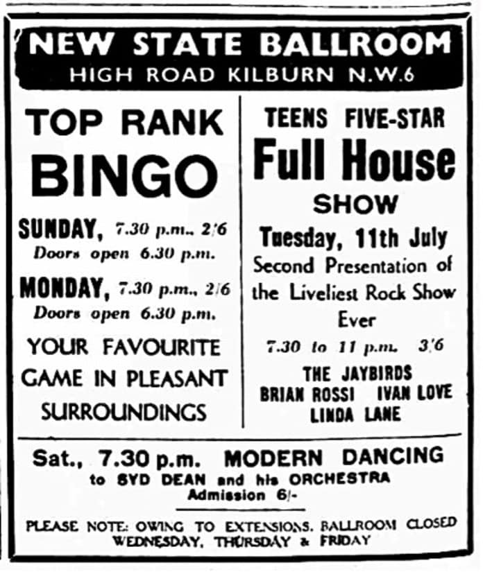 | June 27, 1961 | London, Kilburn | New State Ballroom | as Ivan Love & The Jaybirds with Linda Lane / Brian Rossi / Mr. MacAbre |