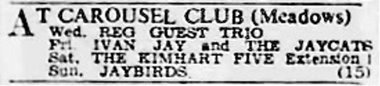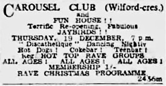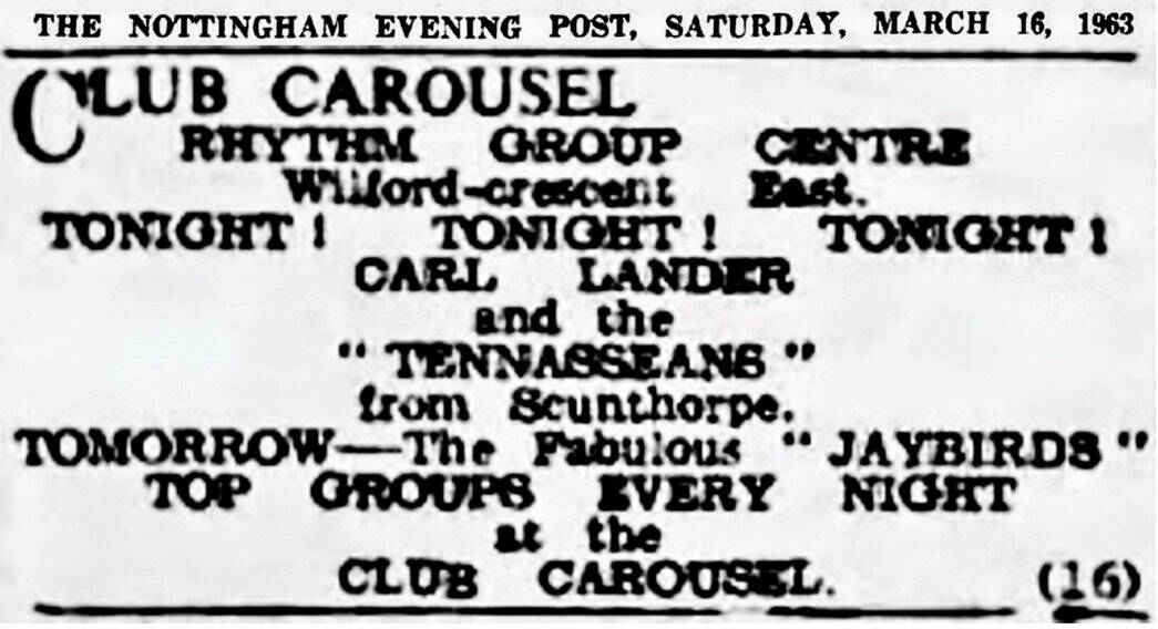 | June 21 or 22, 1963 | Nottingham | Carousel Club | Ivan Jay & The Jaycats |