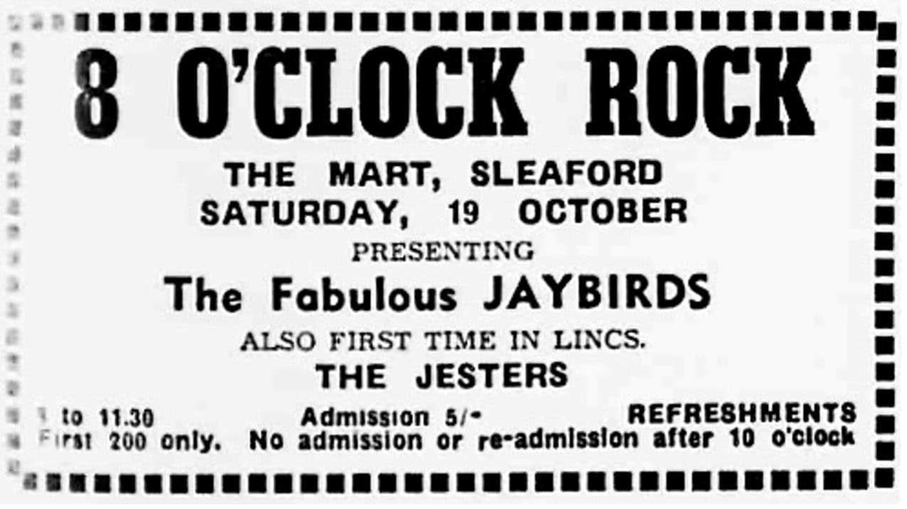 | March 8, 1963 | Horncastle, Lincolnshire | Drill Hall | as The Jaybirds |