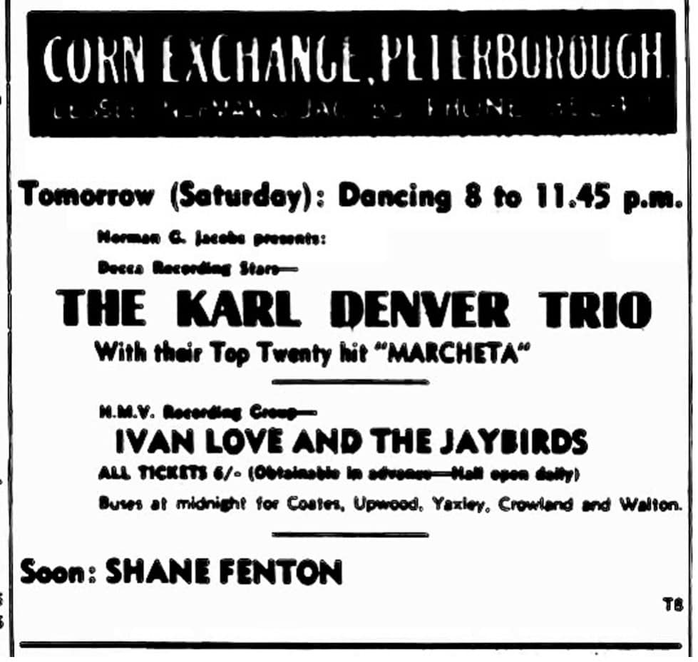 | September 9, 1961 | Peterborough, Cambridgeshire | Corn Exchange | as Ivan Love & The Jaybirds |