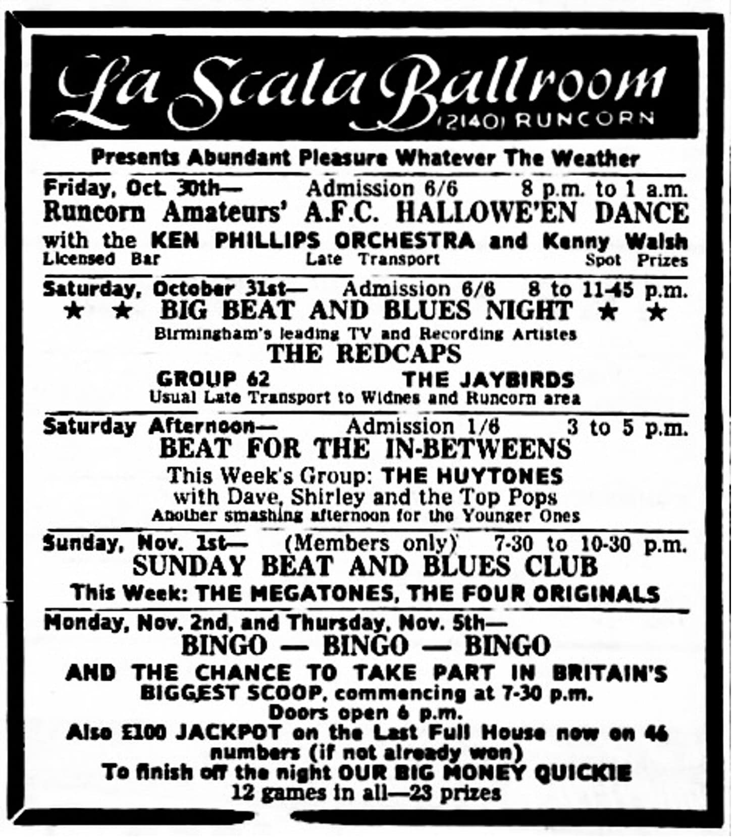 | November 1, 1959 | Stapleford, Nottinghamshire | Stapleford Palace | as Alan Upton and His Jailbreakers |