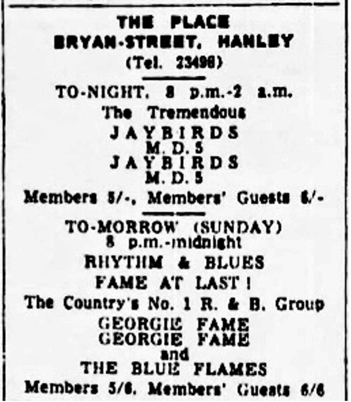 | June 5, 1963 | Nottingham | Rainbow Rooms | as The Jaybirds |