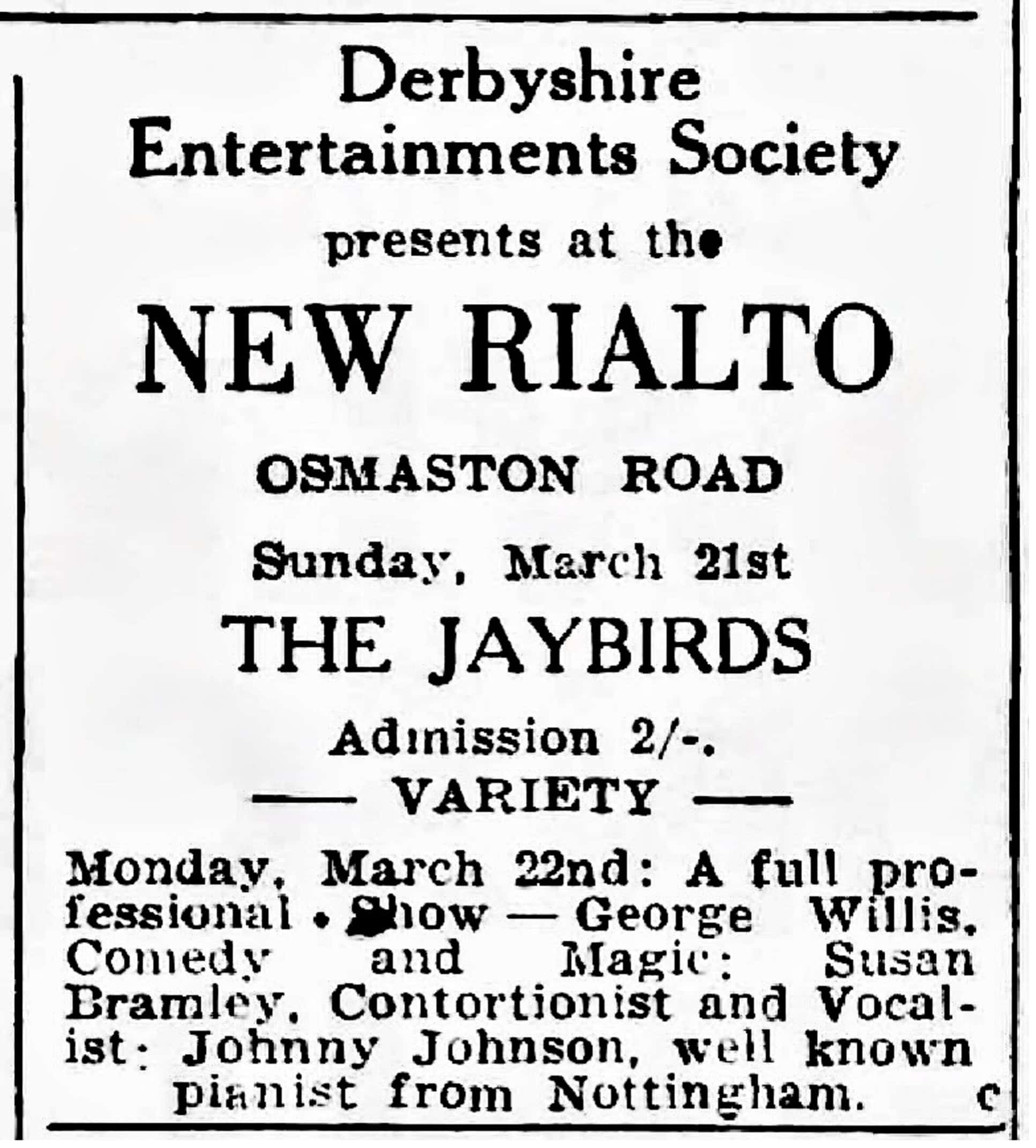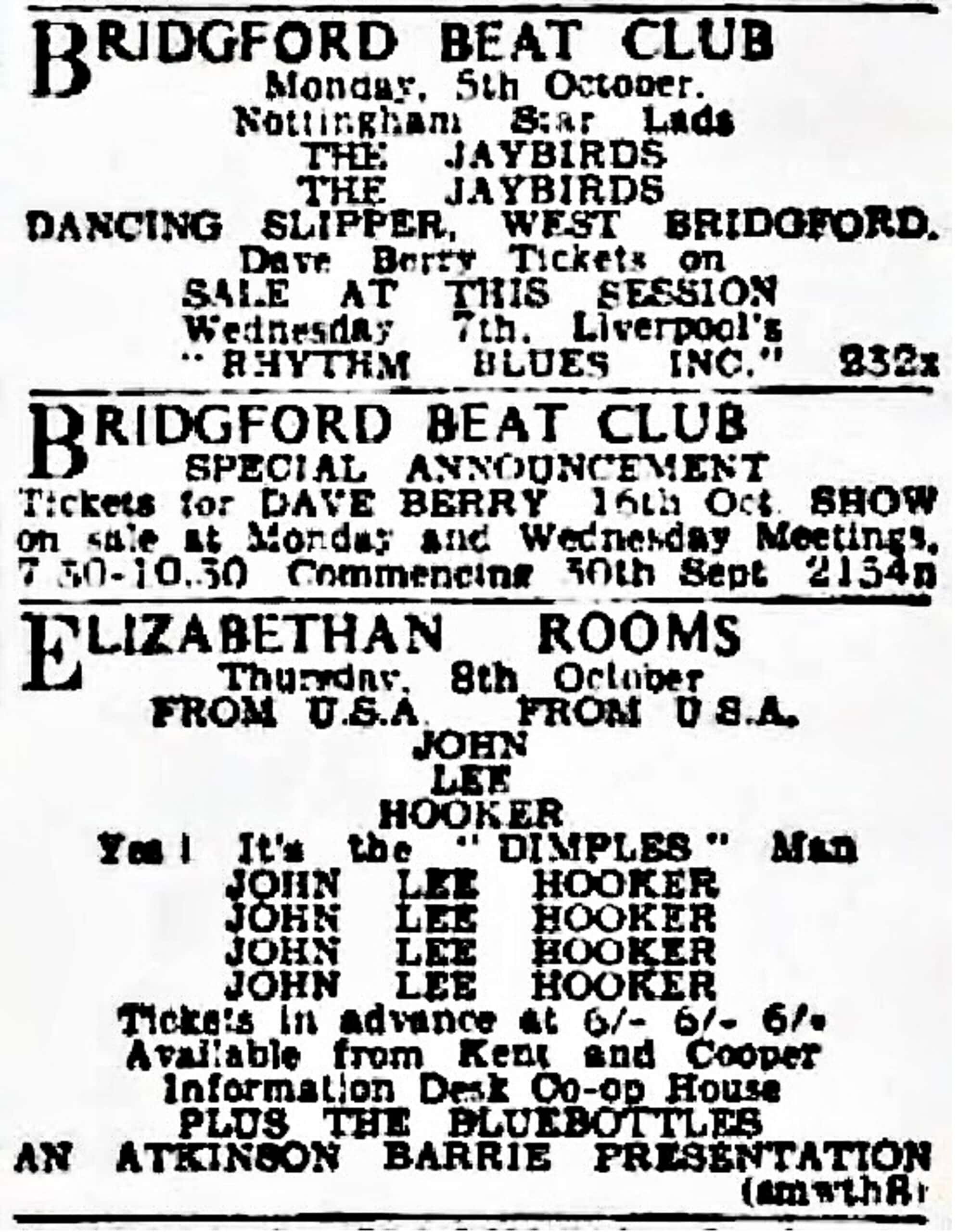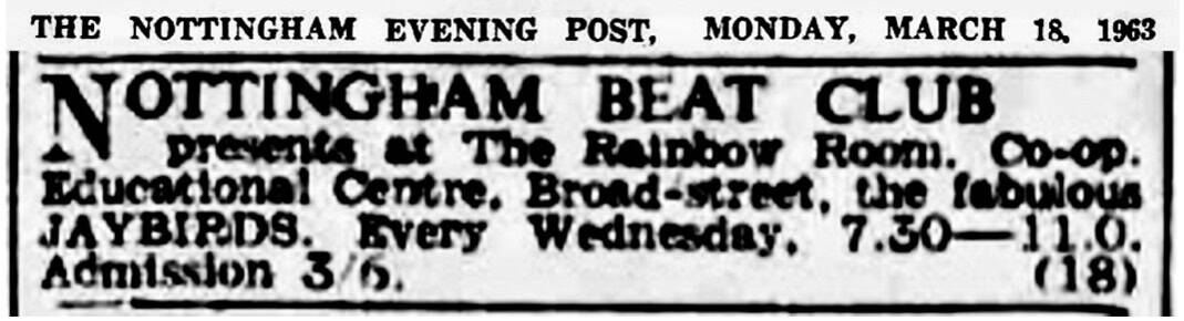 | March 20, 1963 | Nottingham | Rainbow Rooms at the Co-op Educational Centre | as The Jaybirds |