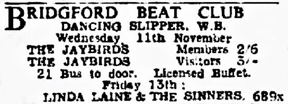| August 2, 1963 | Nottingham | Dancing Slipper | as The Jaybirds |