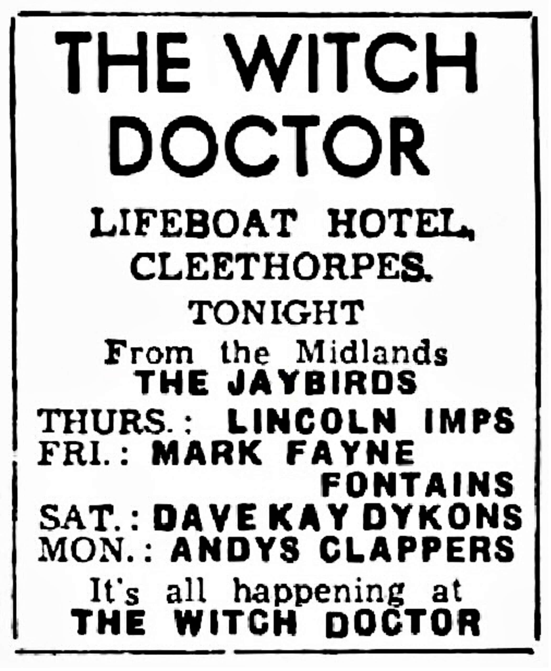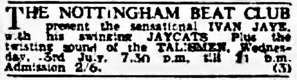 | July 3, 1963 | Nottingham | Beat Club | as Ivan Jaye & The Jaycats |