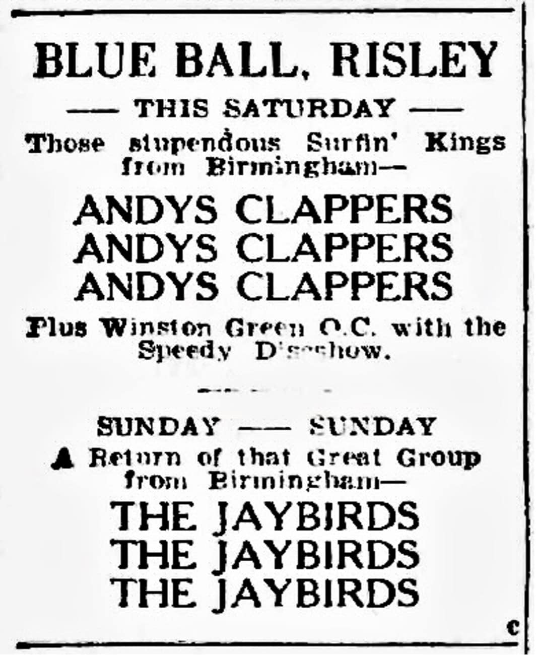 | December 21, 1962 | King’s Lynn, Norfolk | Swinging Christmas Dance North Lynn Community Centro | as The Jaybirds |