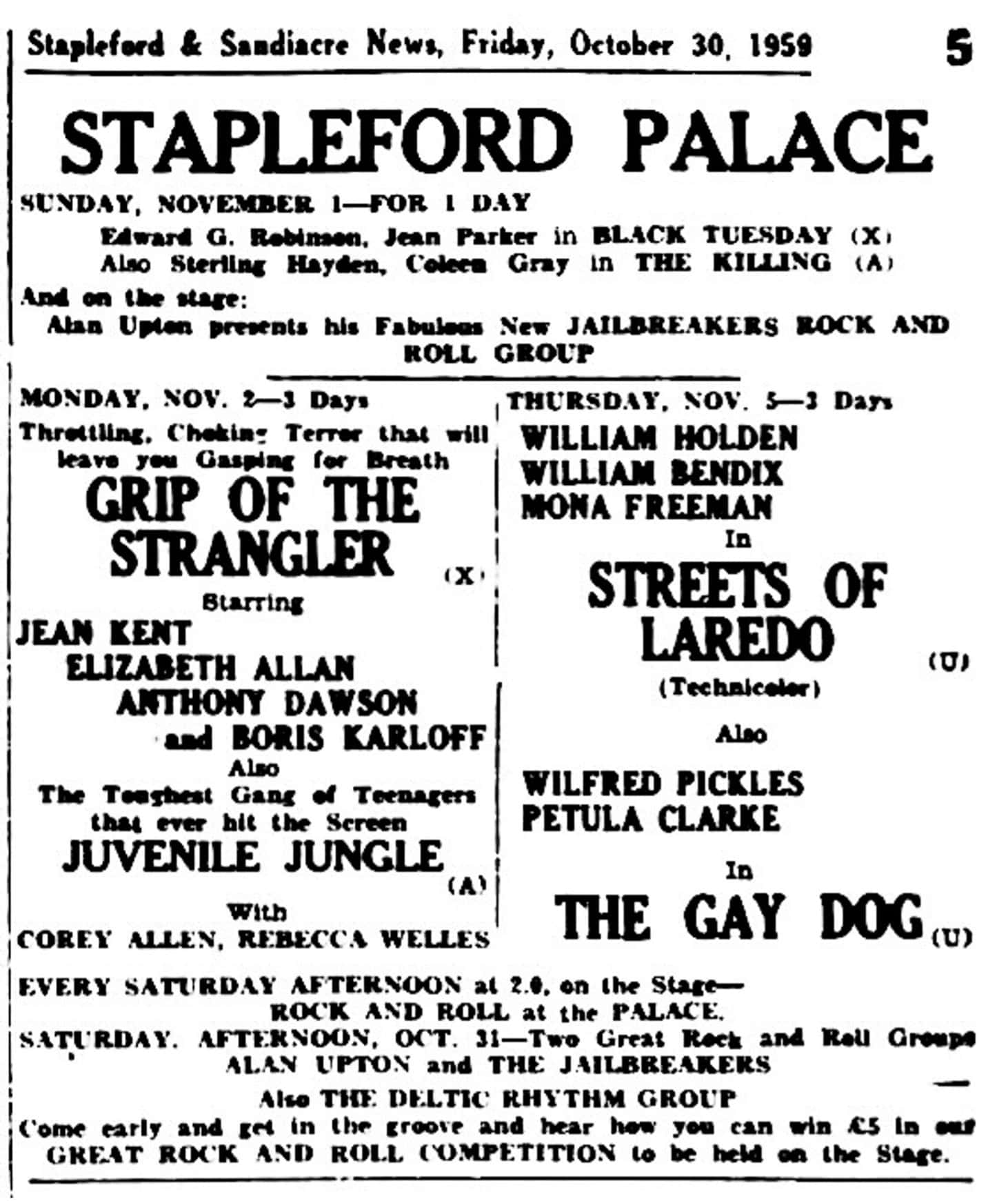 | December 13, 1959 | Stapleford, Nottinghamshire | Stapleford Palace | as Alan Upton and His Jailbreakers |