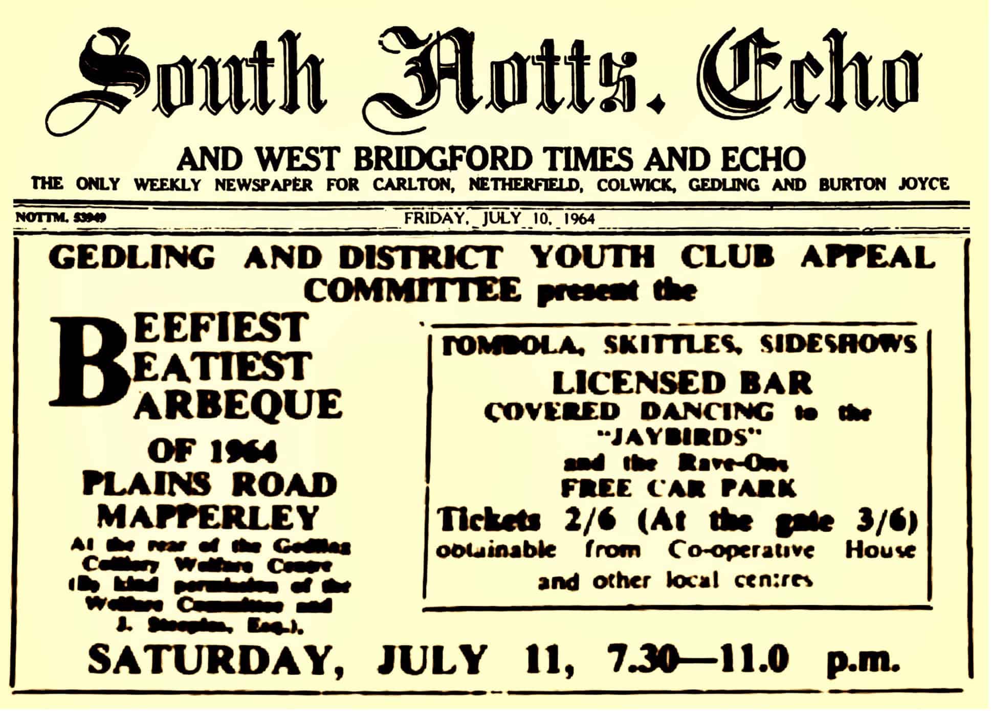 In the beginning Alvin Lee played venues like: The Palace Cinema, Sandiacre, Derbyshire / The Regal, Ripley, Derbyshire / The Palais Theatre (Civic Hall), Mansfield, Nottinghamshire / The Cocked Hat, Nottingham / The Rainbow Rooms (The Beat Club), Broadstreet, Nottingham / Commodore Ballroom, Aspley, Nottingham / YMCA, Shakespeare Street, Nottingham / The Gaumont, corner of Wollaton/Goldsmith Street, Nottingham / All Souls Church Hall, Ilkeston Road, Radford, Nottingham / St. Michael’s Church Hall, Sutton-in-Ashfield, Nottinghamshire / The Dancing Slipper, 14 Central Avenue, West Bridgeford, Nottingham (before it was named the “Locarno”” or the “Ballroom”. Not to be confused with the Victoria Hall, later renamed The Locarno Ballroom, at St Ann’s Well Road, Nottingham). “The Jaybirds were booked up solidly from December 10th 1963 to New Year’s Eve, and apart from local appearances they travelled as far as Norfolk and Banham.” – Midland Beat newspaper, December 1963. “We travelled 3000 miles a week in The Jaybirds van around Nottingham and up to Blyth and Selby, Leeds, Doncaster even as far as Scotland, London and the south coast.” – Alvin Lee, 2004 It may never be possible to uncover and list all of Alvin’s public appearances prior to TYA. Thanks to original clippings from the archives of 57 British Newspapers as well as the research by Stephen Howard from Notts Music Archive www.nottsmusicarchive.com a few dates could be tracked down. Further dates were added thanks to research by Josephine Pate, Susan Davis, Peter Wilson and Maurice Moore for the homepage about the Dungeon Club in Nottingham www.dungeonmods.wordpress.com |